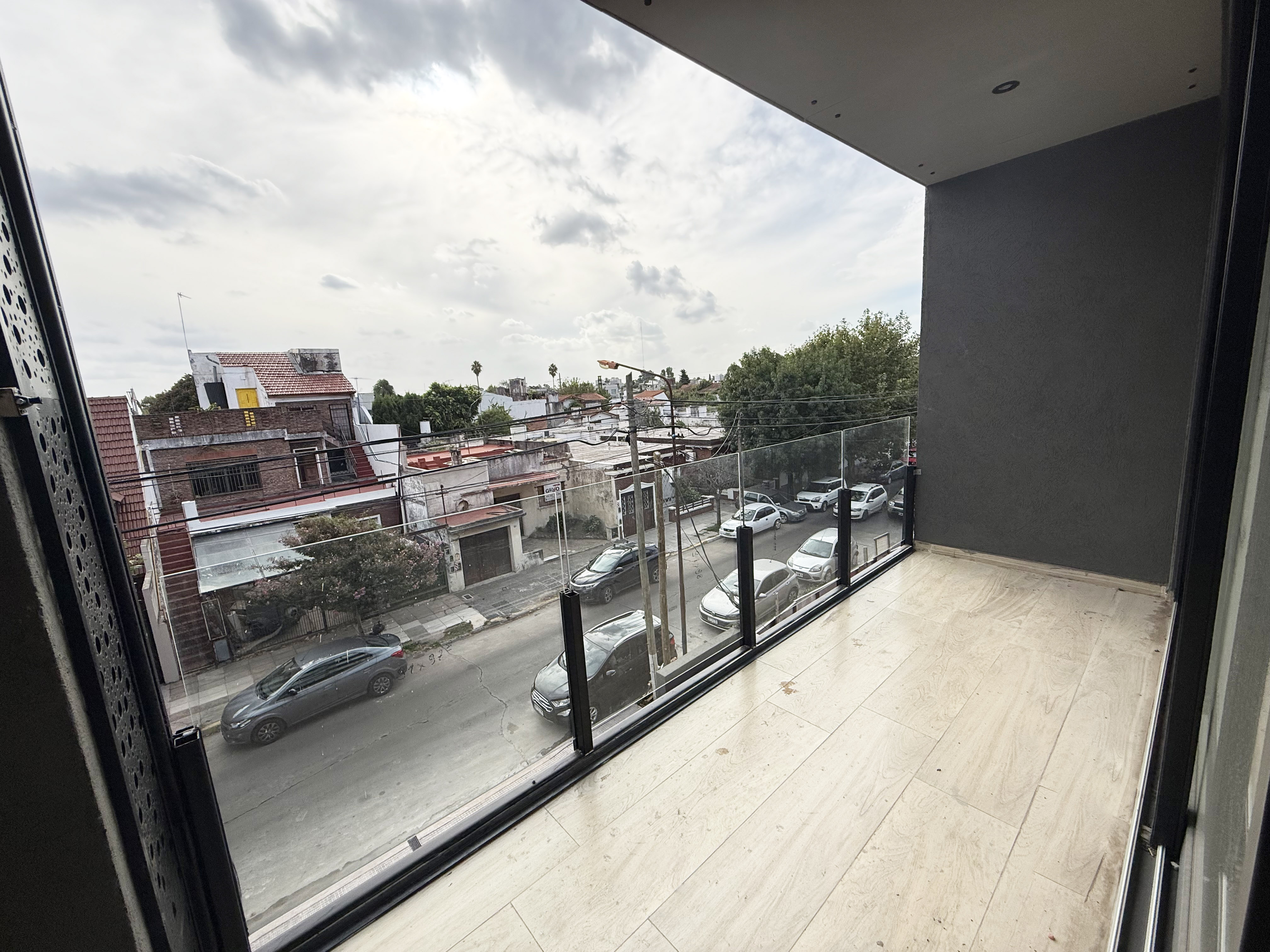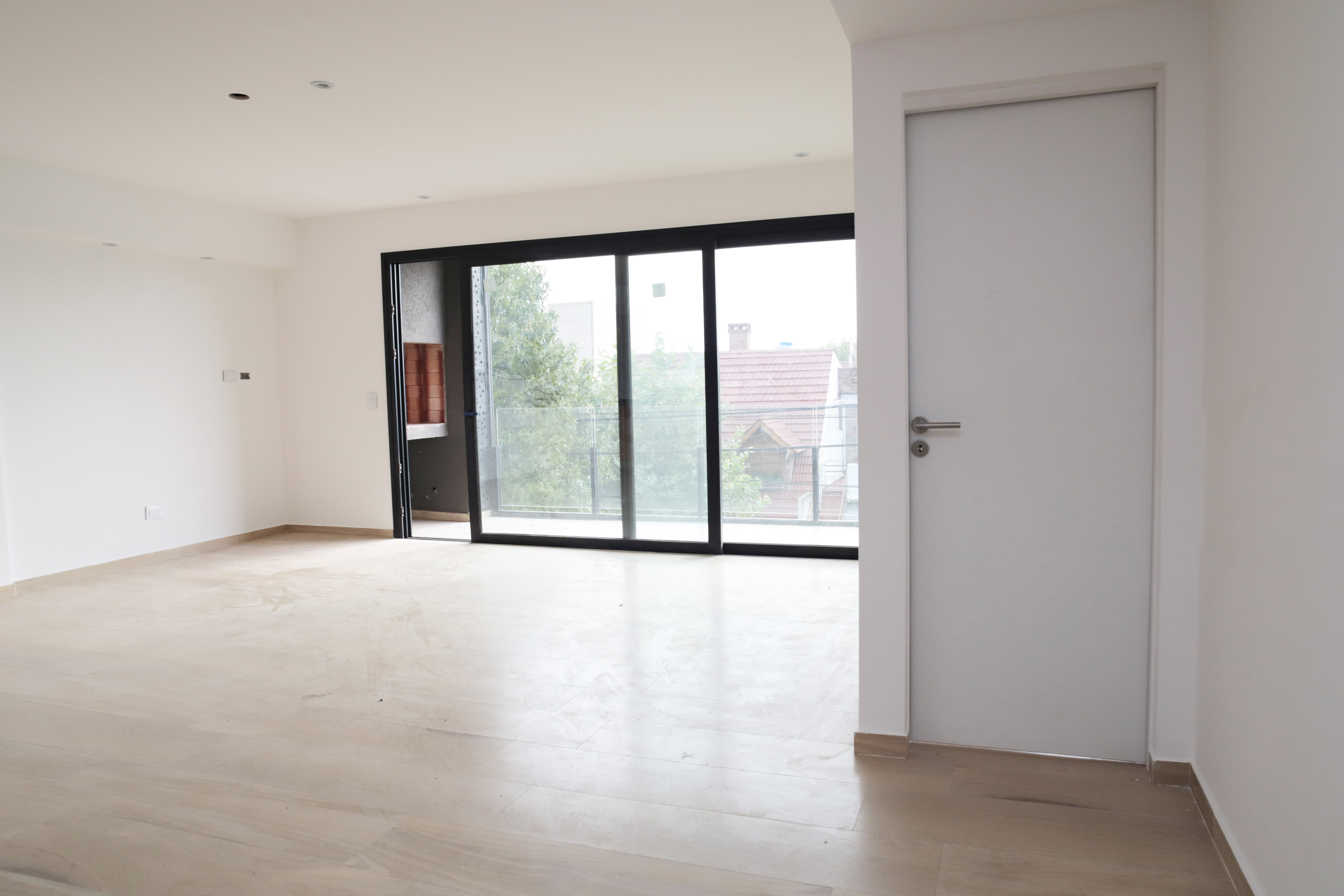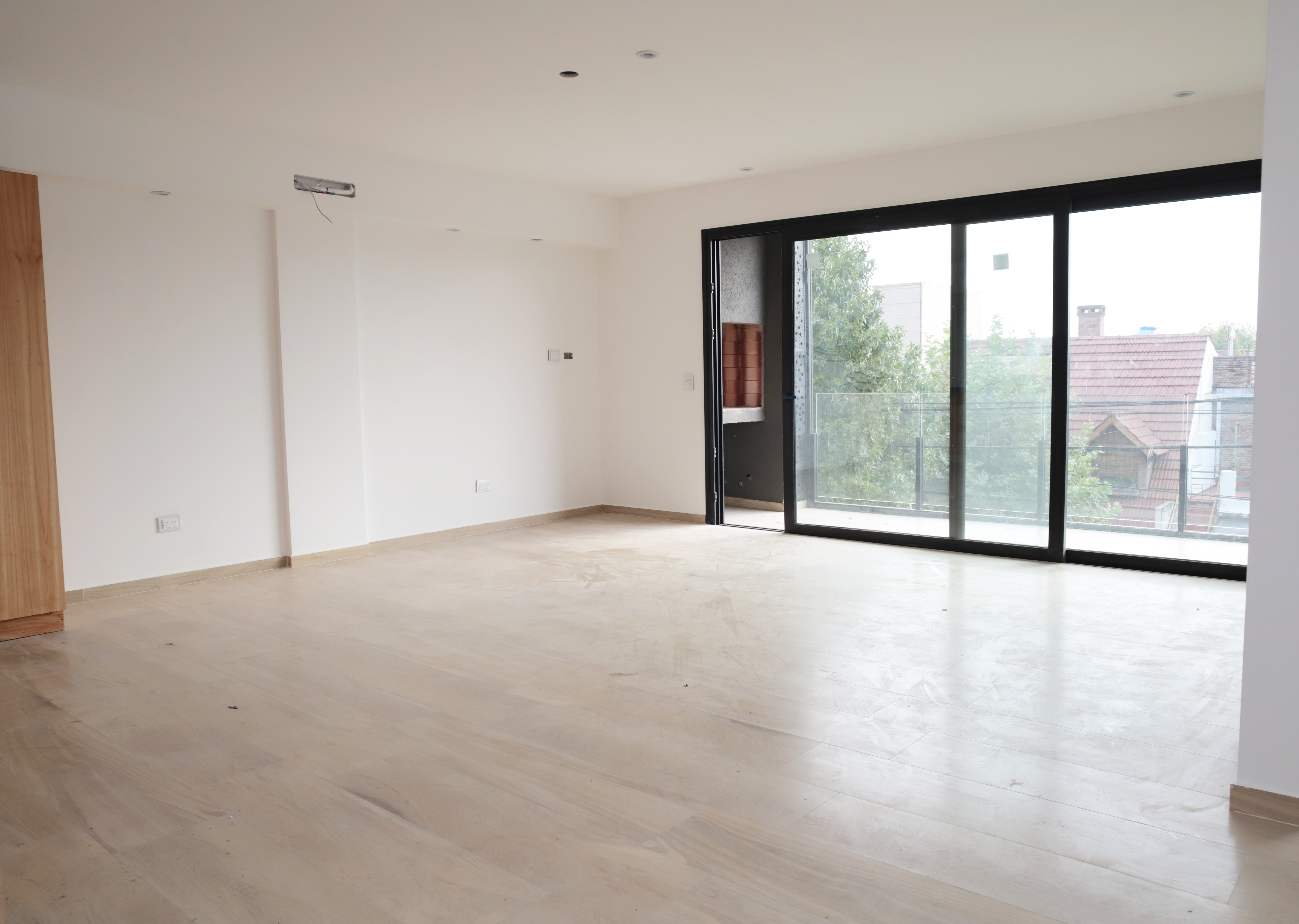 -Pisos de porcelanato en el living-comedor y pisos de vinilo simil madera en la habitacion
