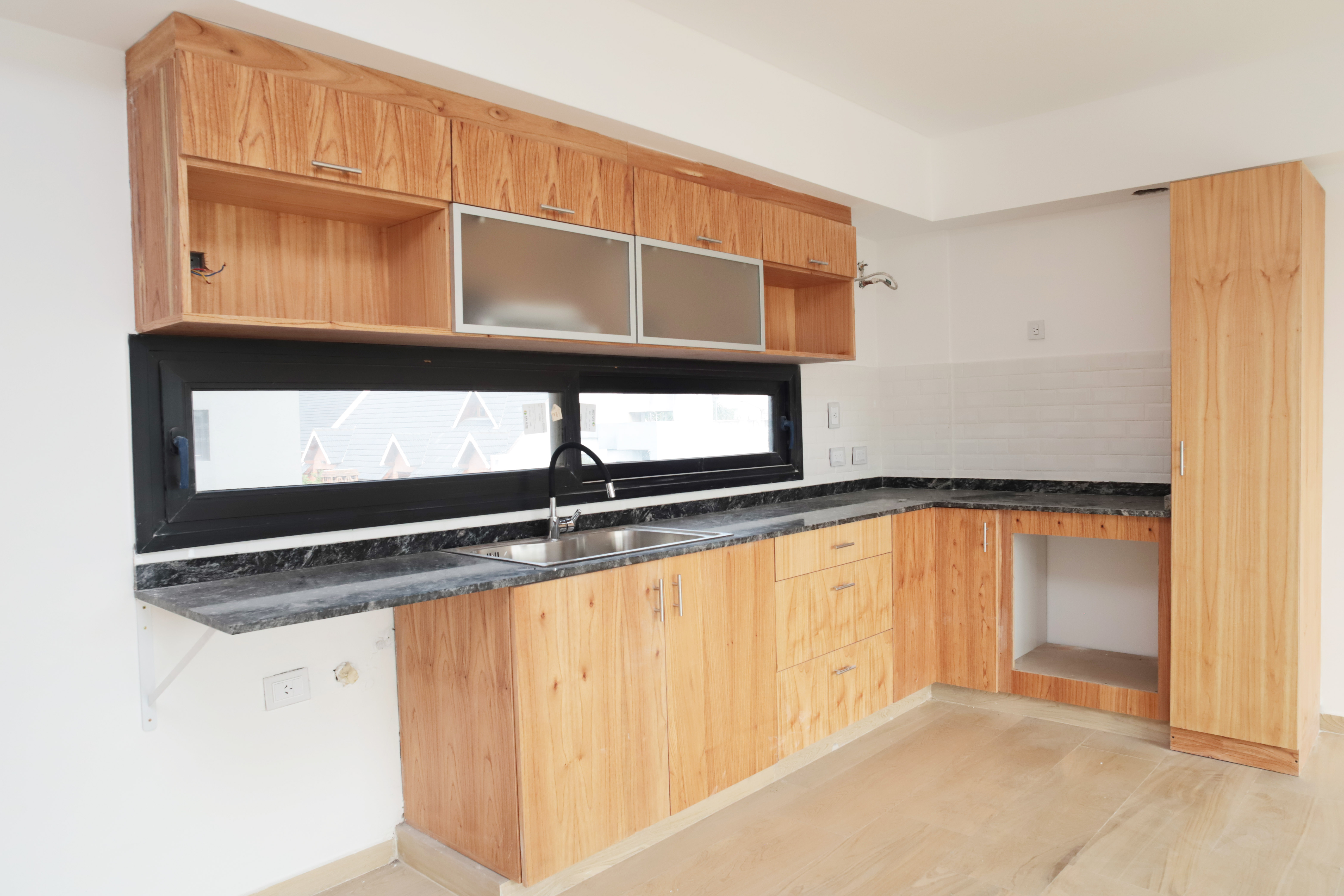 -Cocina: amoblamientos bajo mesada y alacena, mesada de granito, bacha de acero inoxidable