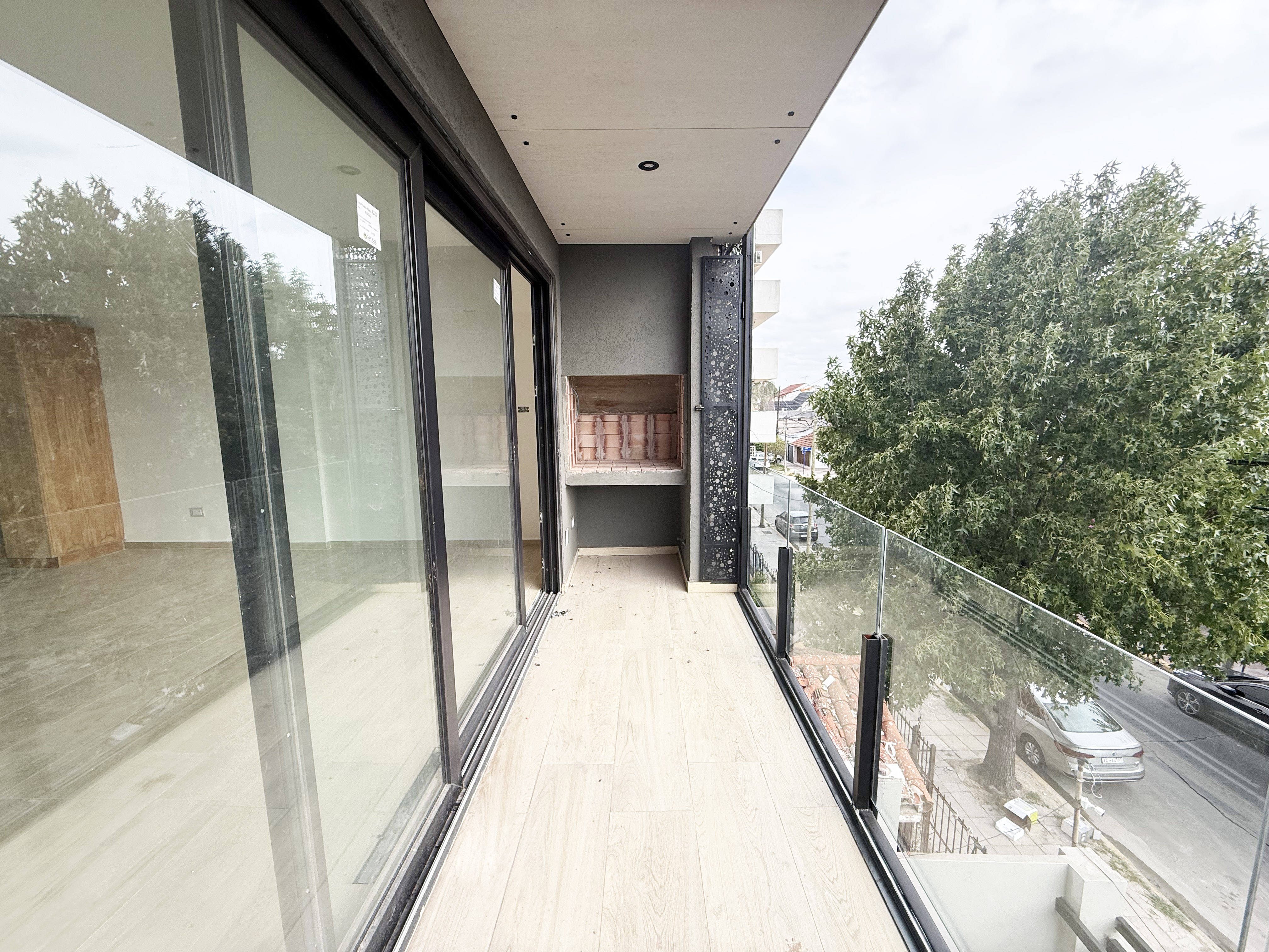 La unidad consta de un living-comedor con salida a un balcón corrido de 8 metros con parrilla, cocina integrada con barra desayunadora, además posee un espacio para lavadero. La habitación principal es con vestidor y baño completo en suite. La segunda habitación preparada para placar, hoy no se encuentra cerrada.
