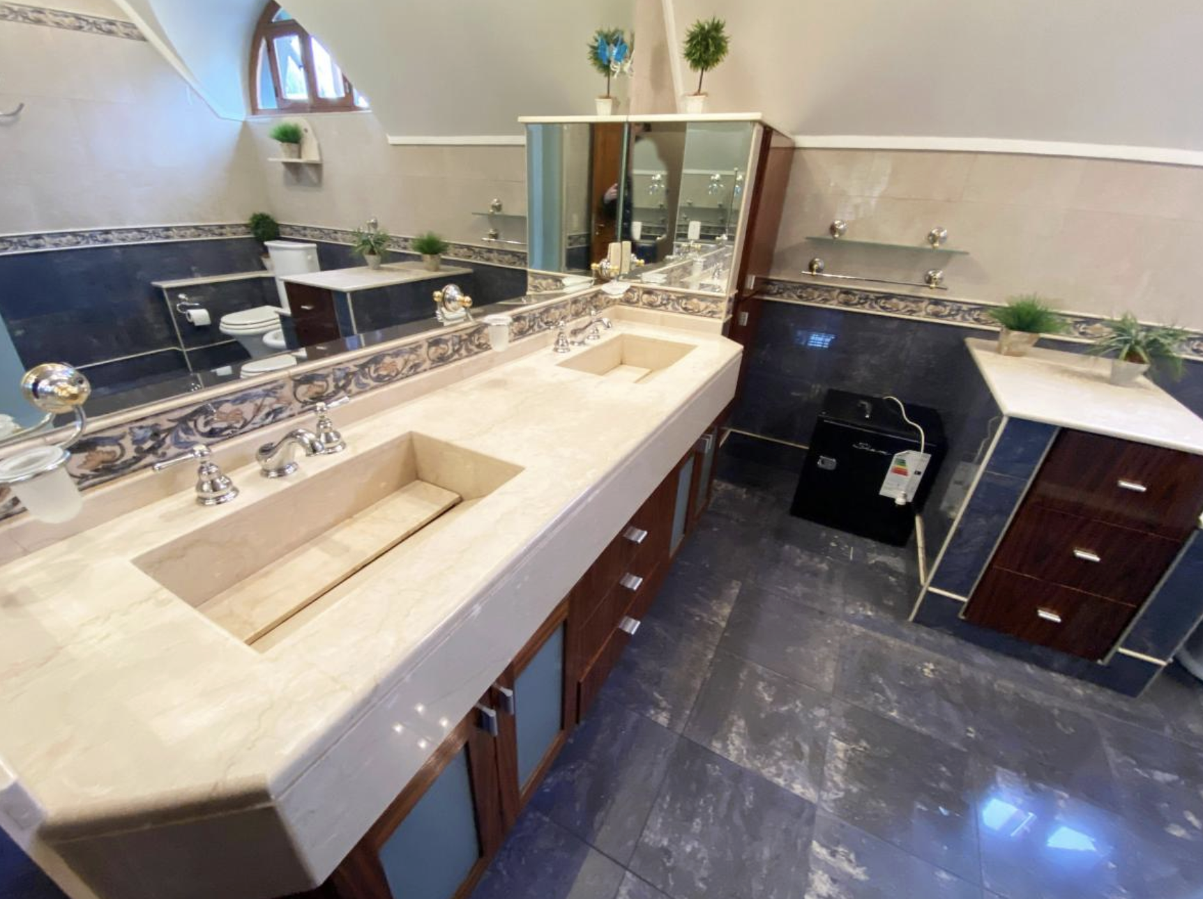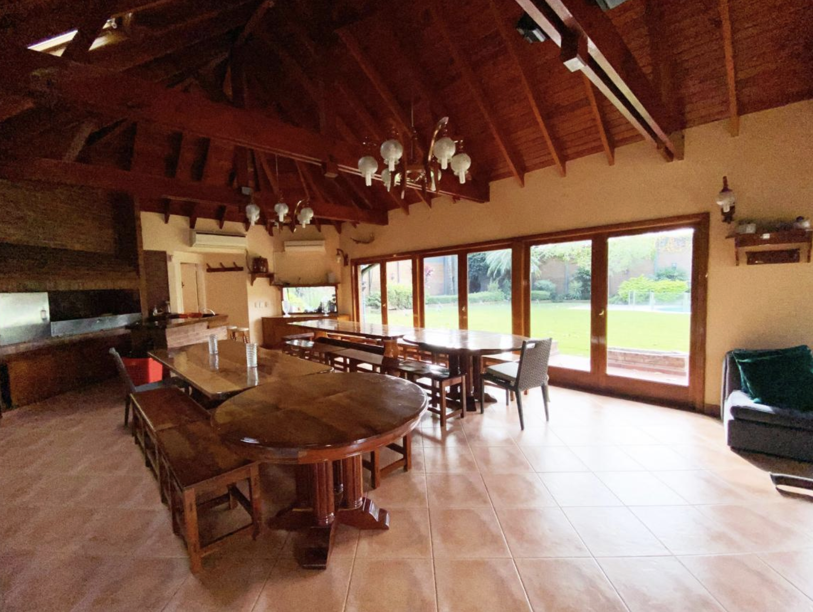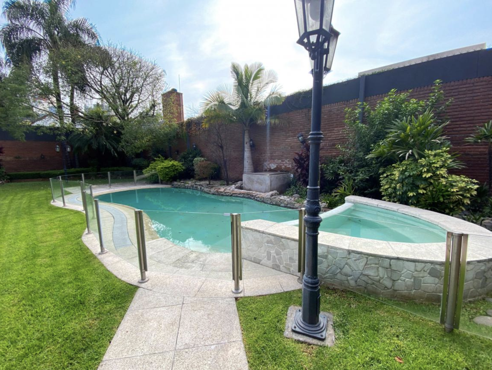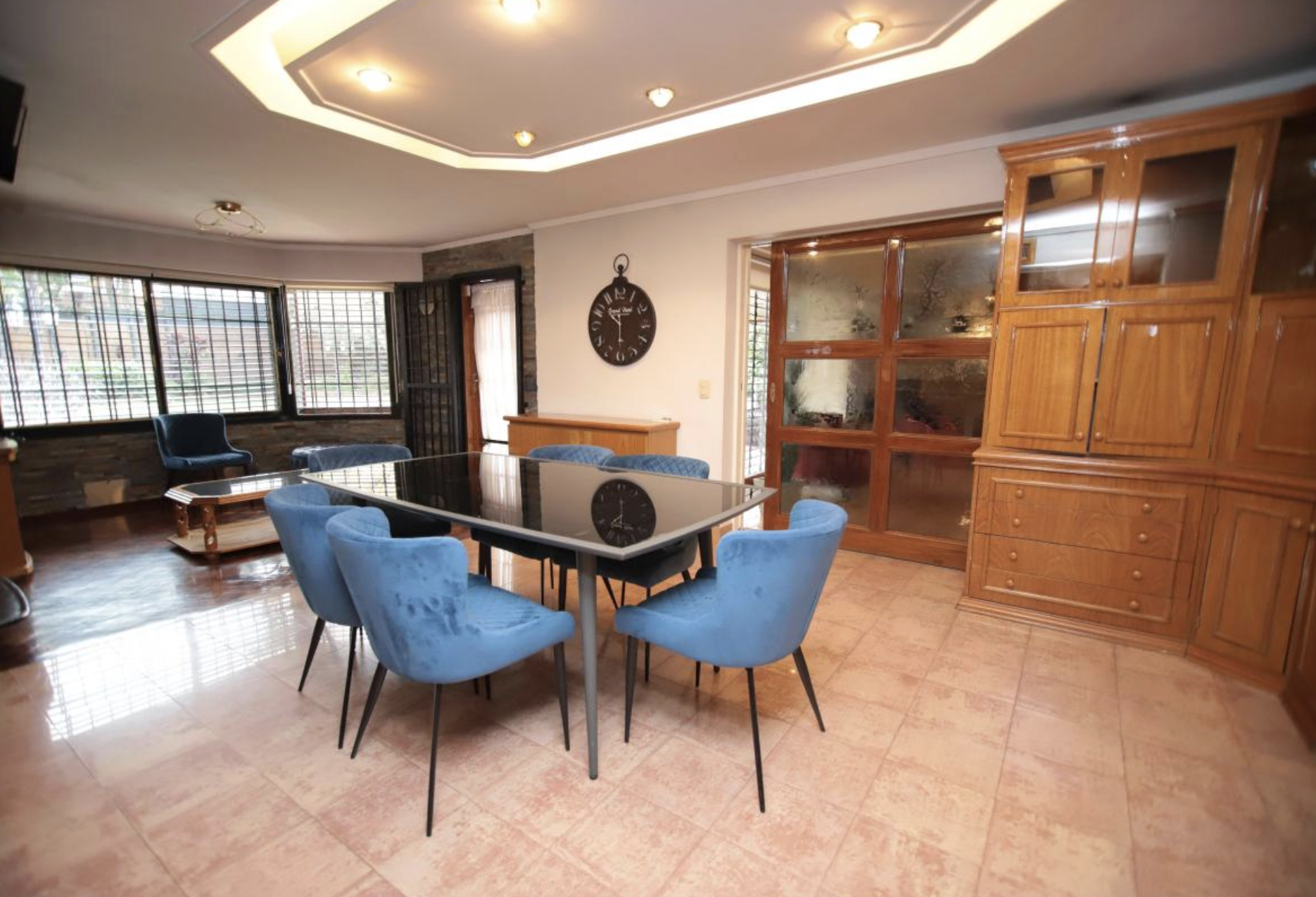 Hermosa casa de 6 ambientes en zona residencial de Ramos Mejía Sur, a tres cuadras de Plaza Mitre, y a cinco cuadras de Av. de Mayo. Edificada sobre dos lotes con frente importante, con diseño de techo único, con doble puerta de ingreso y jardín al frente. Hall de recepción amplio , toallete de recepción, gran living-comedor apaisado con grandes ventanales con vista al parque, escritorio con vista al frente, cocina con modulares modernos completos con barra desayunadora y comedor diario, dependencia de servicio, lavadero. En el primer piso tenemos, habitación en suite, master suite con vestidor y puerta blindada con vista al parque. Luego pasamos por otra puerta blindada a tres habitaciones mas con placard y baño completo. Cochera cubierta para tres autos, además de espacio descubierto para tres autos mas. Importante Quincho cubierto con sótano, (gran espacio de guardado), gimnasio. Bellísimo parque con piscina climatizada. grupo electrógeno . Cabe destacar que posee excelentes detalles de terminación, puertas macizas en roble, muy luminosa y funcional, un estilo clásico que no pasa de moda.