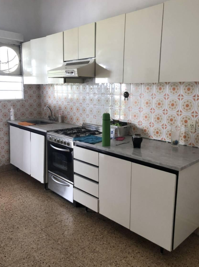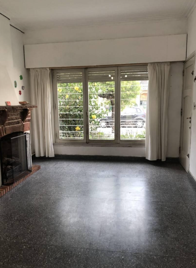 Excelente Chalet a dos cuadras de Av de Mayo. Posee jardín al frente con entrada para auto, y ademas con cochera cubierta muy amplia. Encontramos living-comedor con un hogar y ventanales grandes con vista al frente. Cocina separada cómoda con salida a una galería muy amplia que conecta con la cochera, tiene un fondo libre parquizado con una habitación para guardado. Posee dos habitaciones con placard y piso de parquet, una con vista al frente y la segunda al jardín. Baño completo. Cabe aclarar que es muy luminosa y funcional!