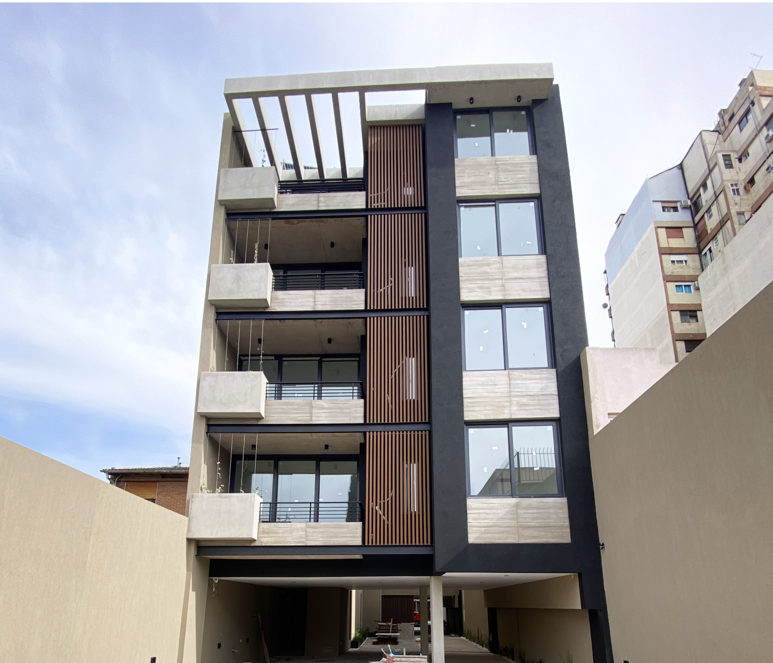 Edificio situado en el corazón de Ramos Mejía Sur a tres cuadras de Av. de Mayo y A 2 cuadras de Av. Rivadavia Edificio de cuatro pisos, ocho departamentos, dos por pallier. Departamento de 3 ambientes con cochera de 78 metros cuadrados, cotrafrente. El edificio cuenta con paneles solares en la terraza para reducir el gasto energético de los espacios comunes. Ascensor con funciones inteligentes. El departamento consta de cocina con modulares completos semi-integrada, living comedor de 3.60 x 7.10, balcón aterrazado de 3.40x 1.45, habitación principal en suite con vestidor, segunda habitación con placard,/con interiores. baño completo. Aberturas de PVC, vidrios DVH con premarcos, excelentes terminaciones y detalles de categoría. Con CALDERA (CALDAIA), y pre instalacion de aires acondicionados.