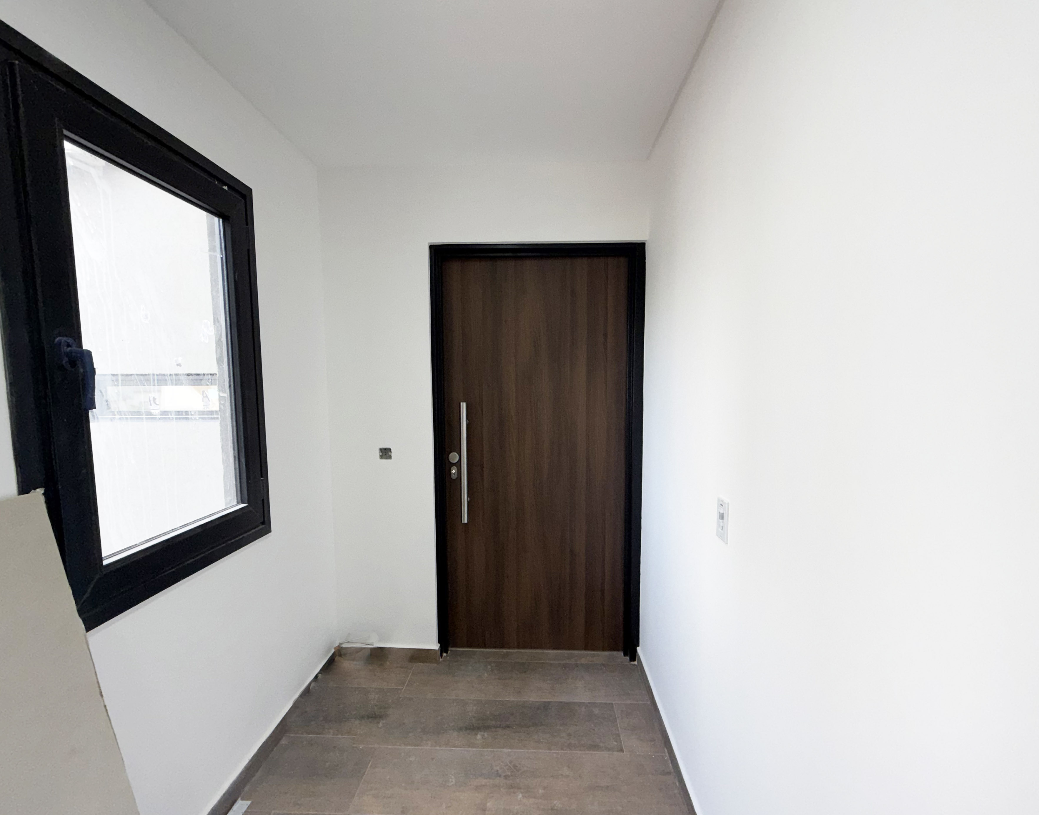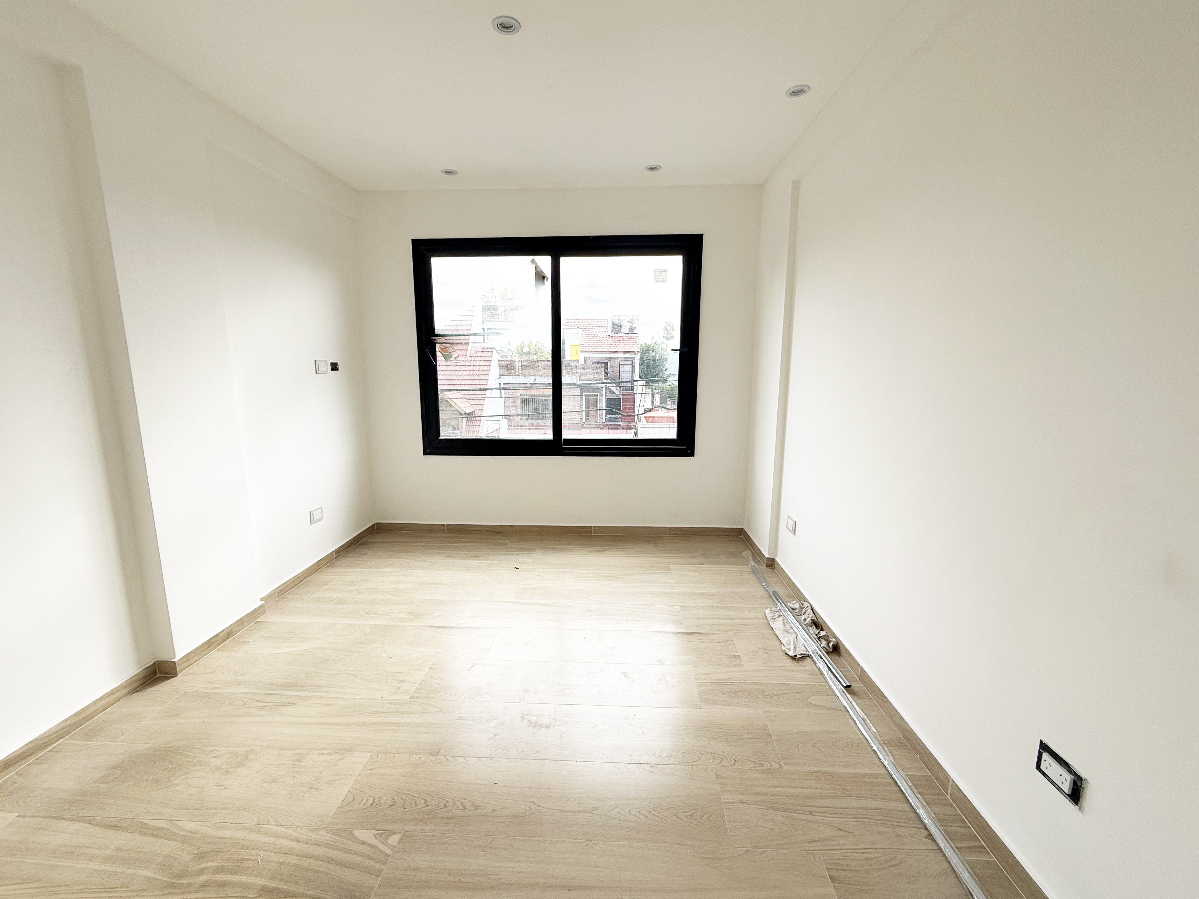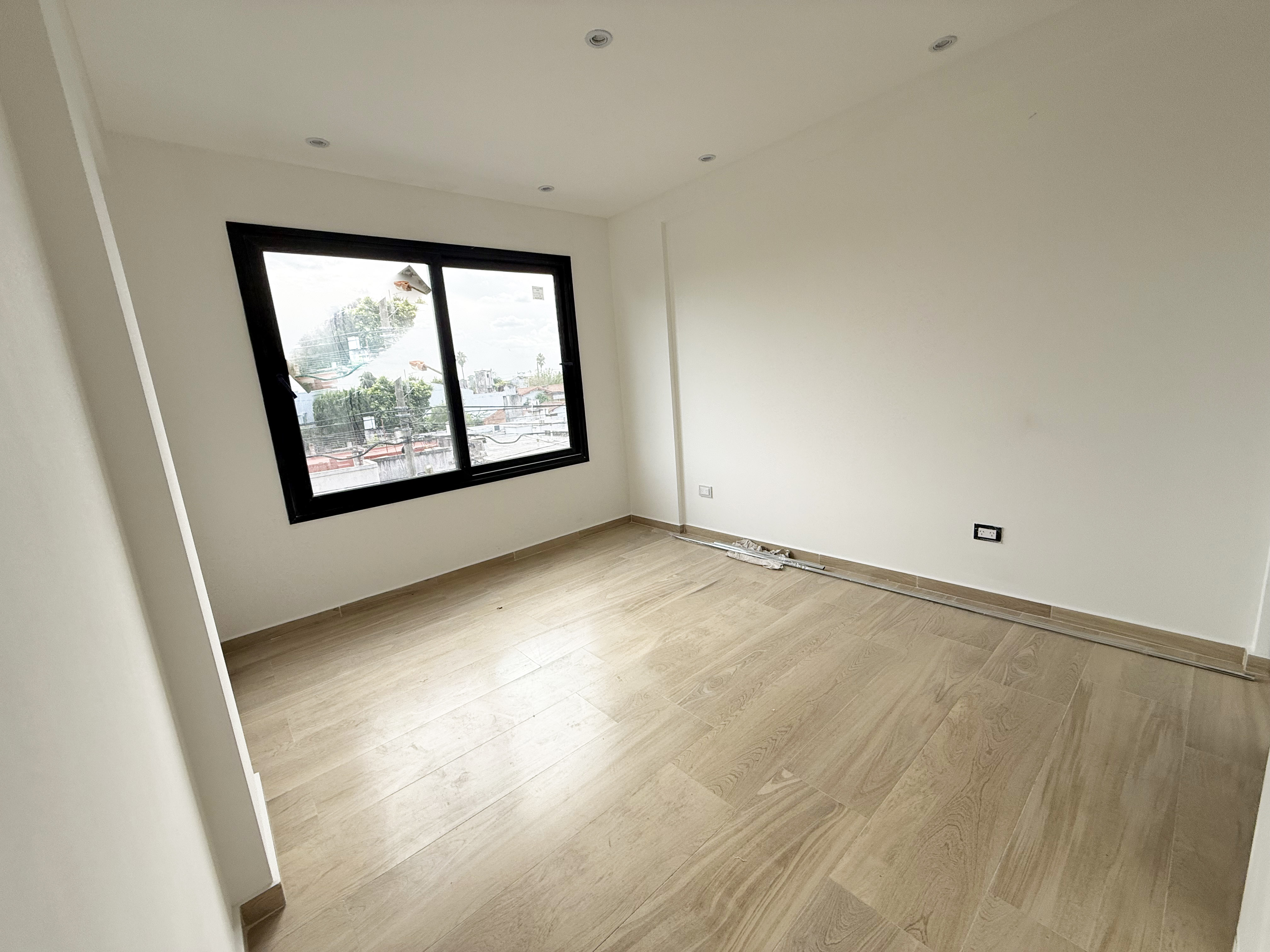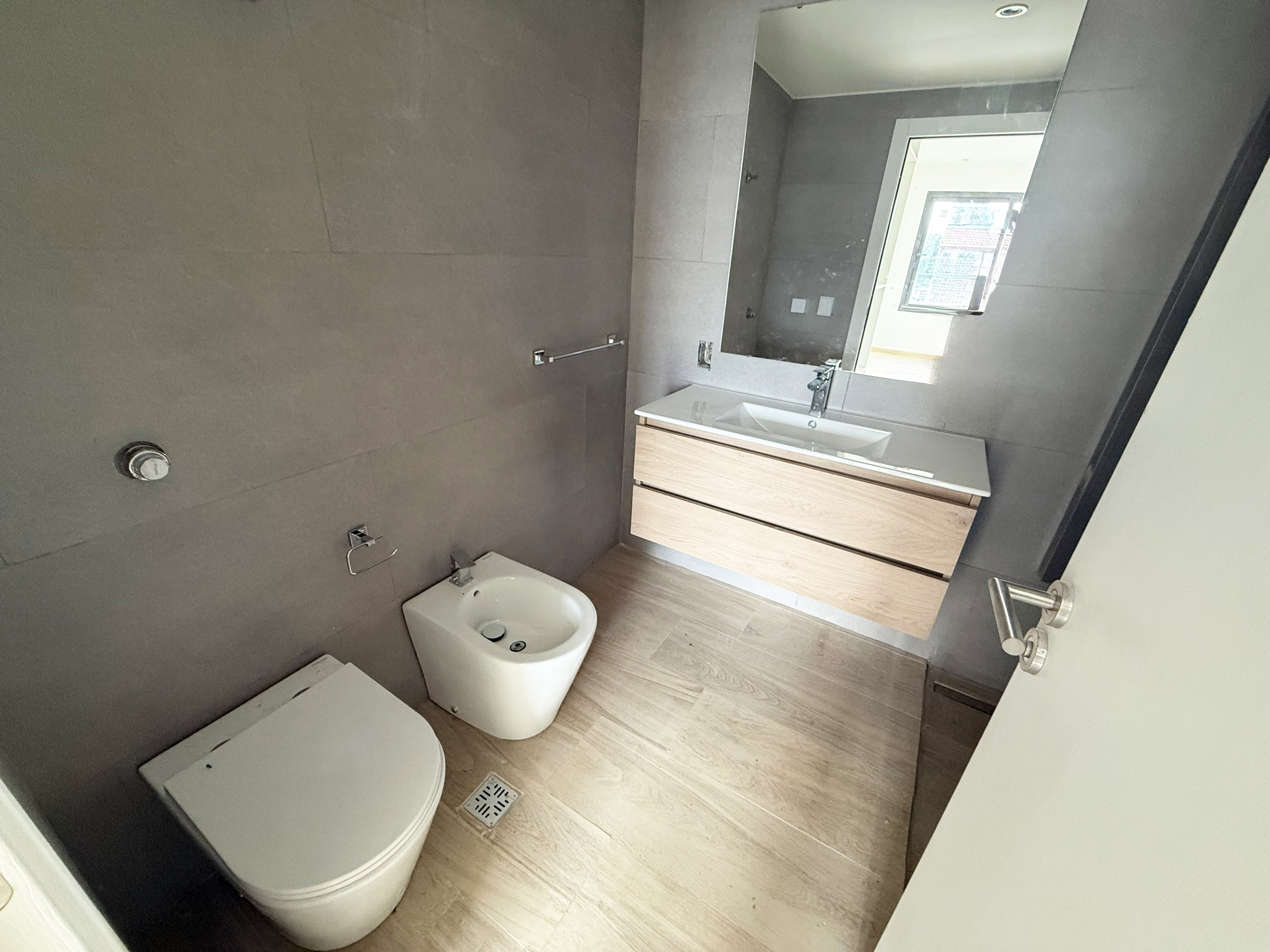 -Pisos de porcelanato en el living-comedor y pisos de vinilo simil madera en la habitacion