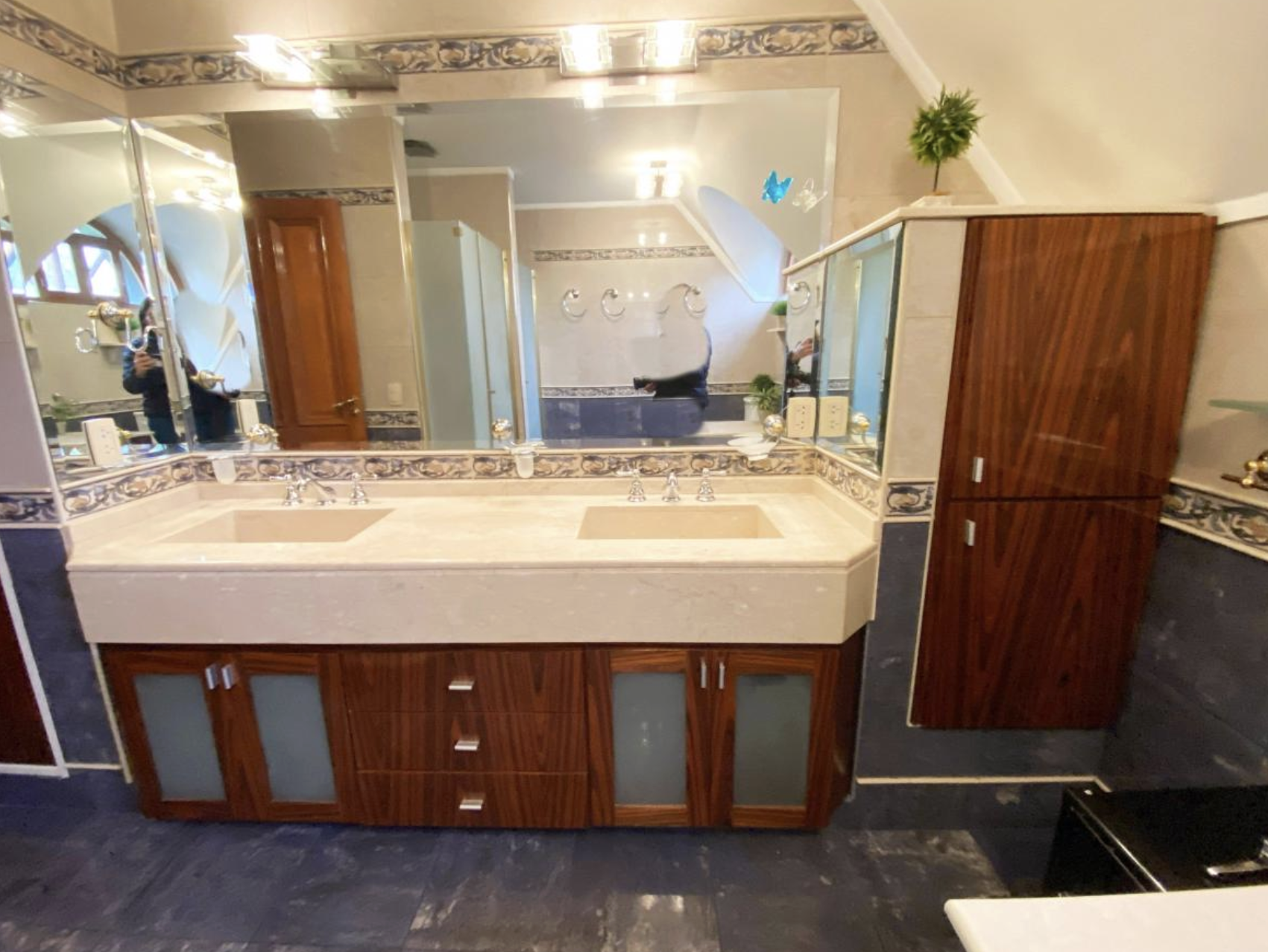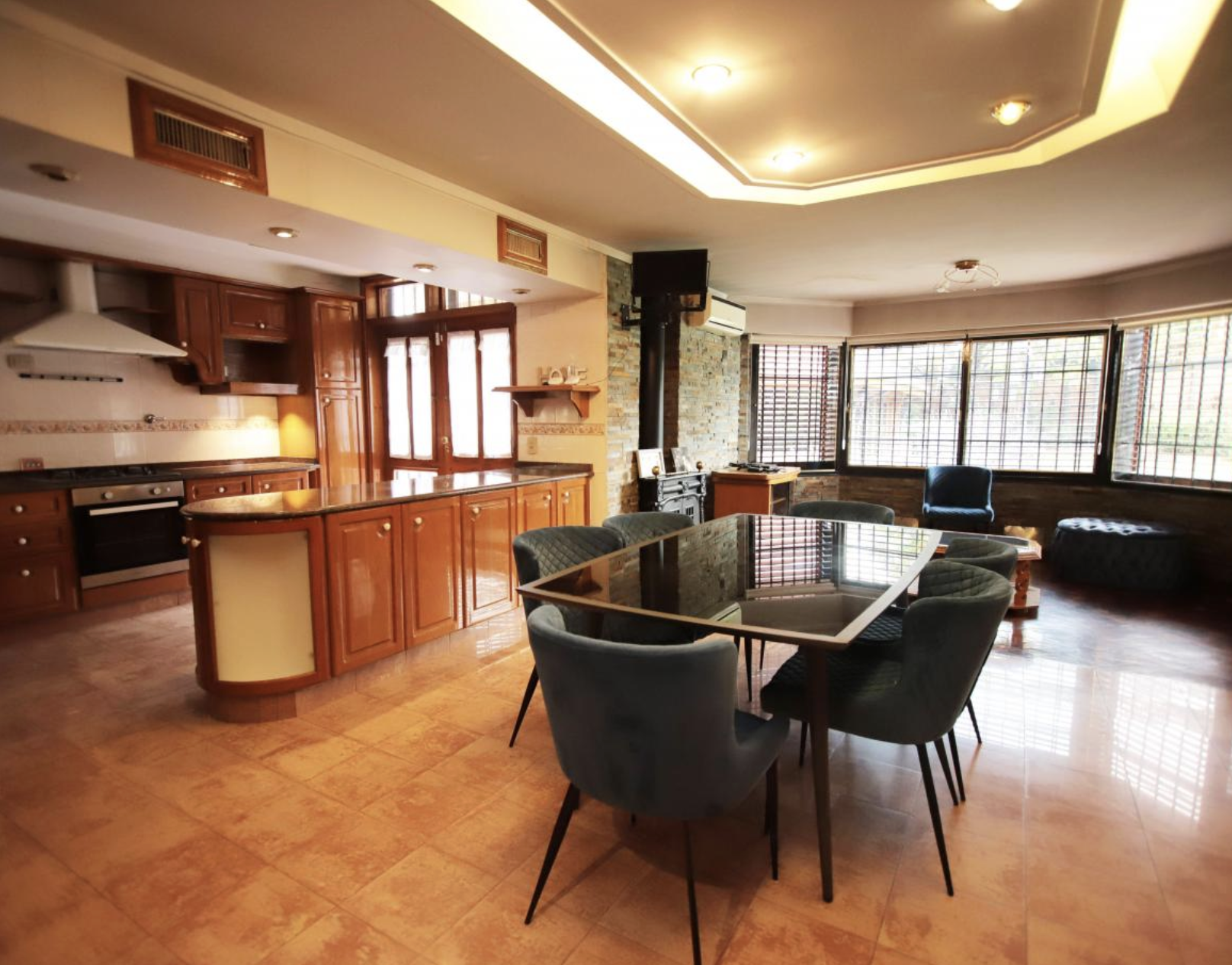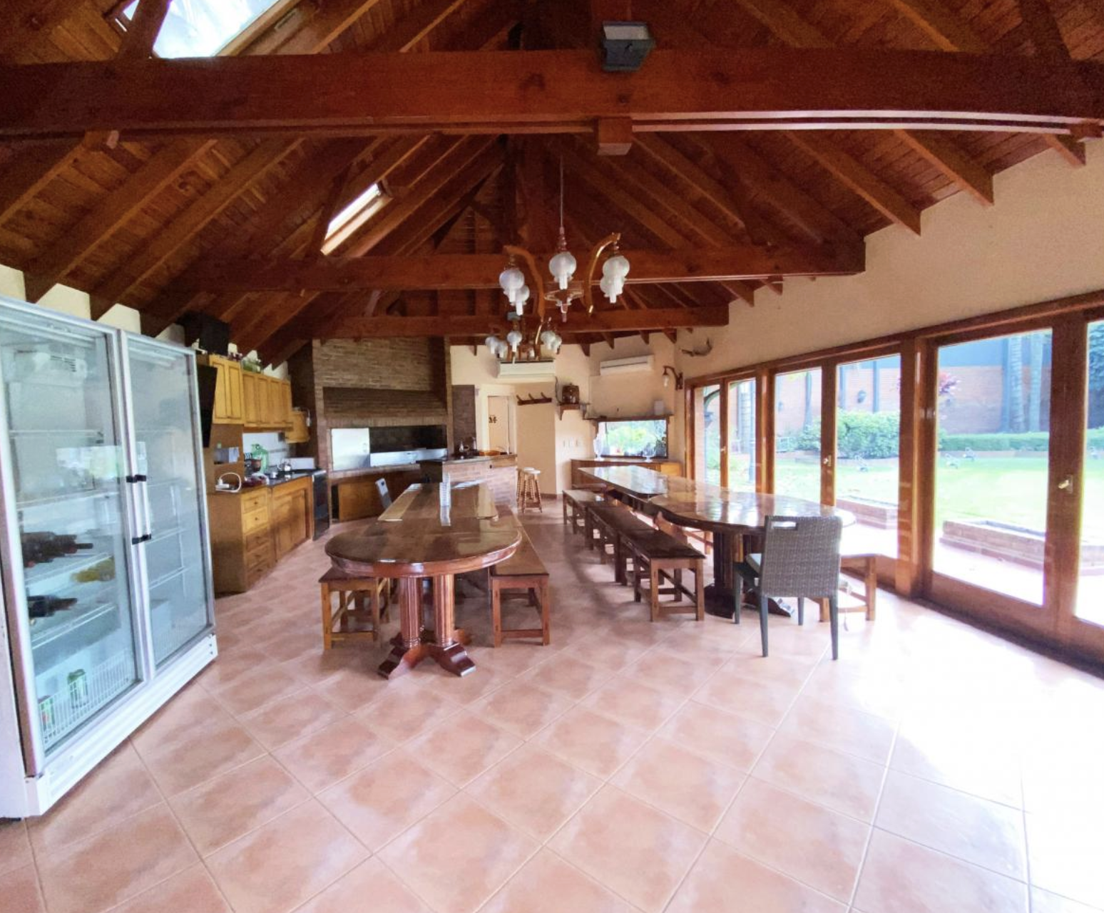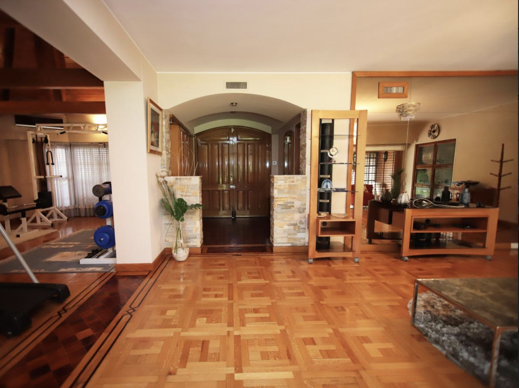 Hermosa casa de 6 ambientes en zona residencial de Ramos Mejía Sur, a tres cuadras de Plaza Mitre, y a cinco cuadras de Av. de Mayo. Edificada sobre dos lotes con frente importante, con diseño de techo único, con doble puerta de ingreso y jardín al frente. Hall de recepción amplio , toallete de recepción, gran living-comedor apaisado con grandes ventanales con vista al parque, escritorio con vista al frente, cocina con modulares modernos completos con barra desayunadora y comedor diario, dependencia de servicio, lavadero. En el primer piso tenemos, habitación en suite, master suite con vestidor y puerta blindada con vista al parque. Luego pasamos por otra puerta blindada a tres habitaciones mas con placard y baño completo. Cochera cubierta para tres autos, además de espacio descubierto para tres autos mas. Importante Quincho cubierto con sótano, (gran espacio de guardado), gimnasio. Bellísimo parque con piscina climatizada. grupo electrógeno . Cabe destacar que posee excelentes detalles de terminación, puertas macizas en roble, muy luminosa y funcional, un estilo clásico que no pasa de moda.