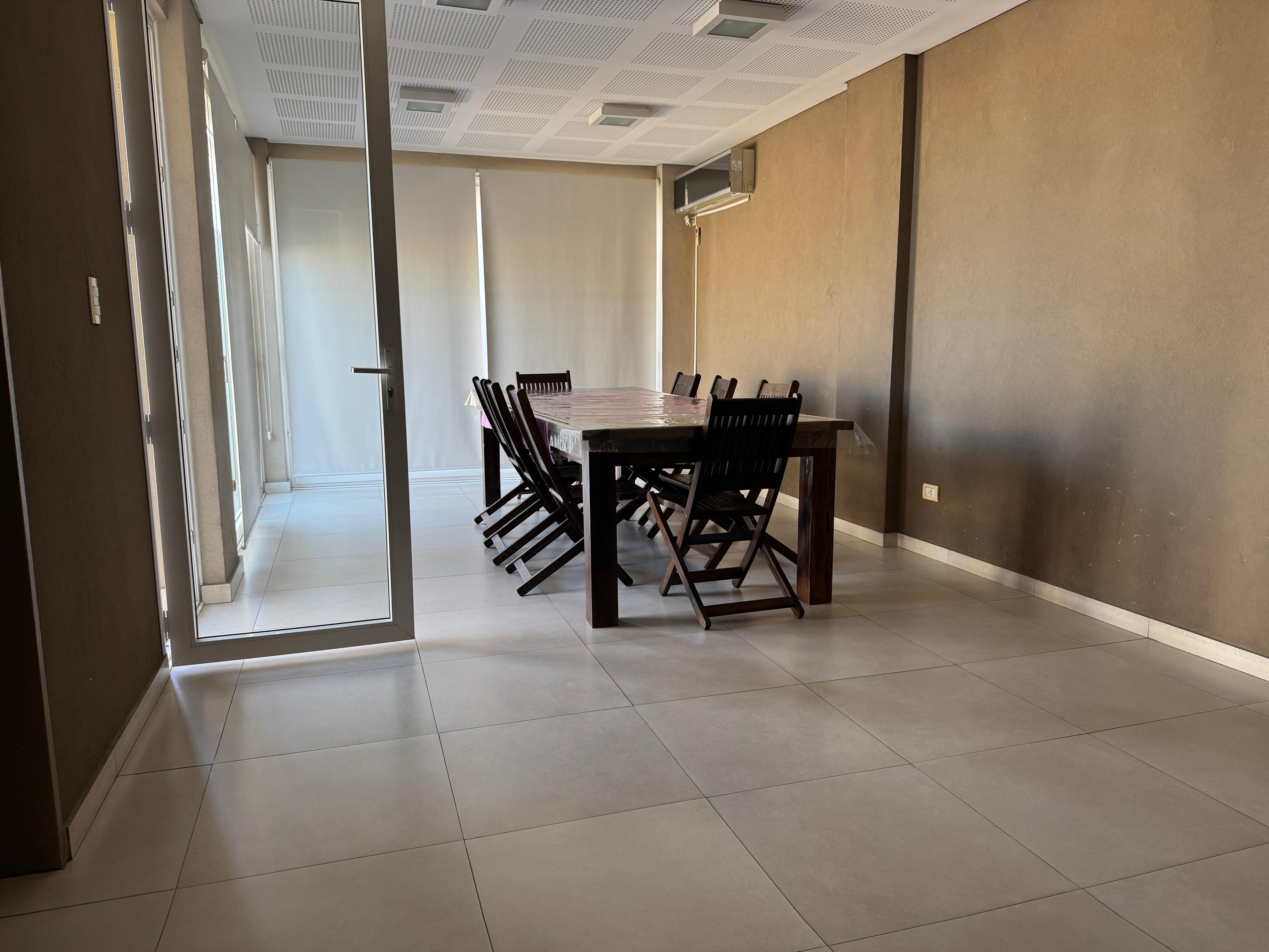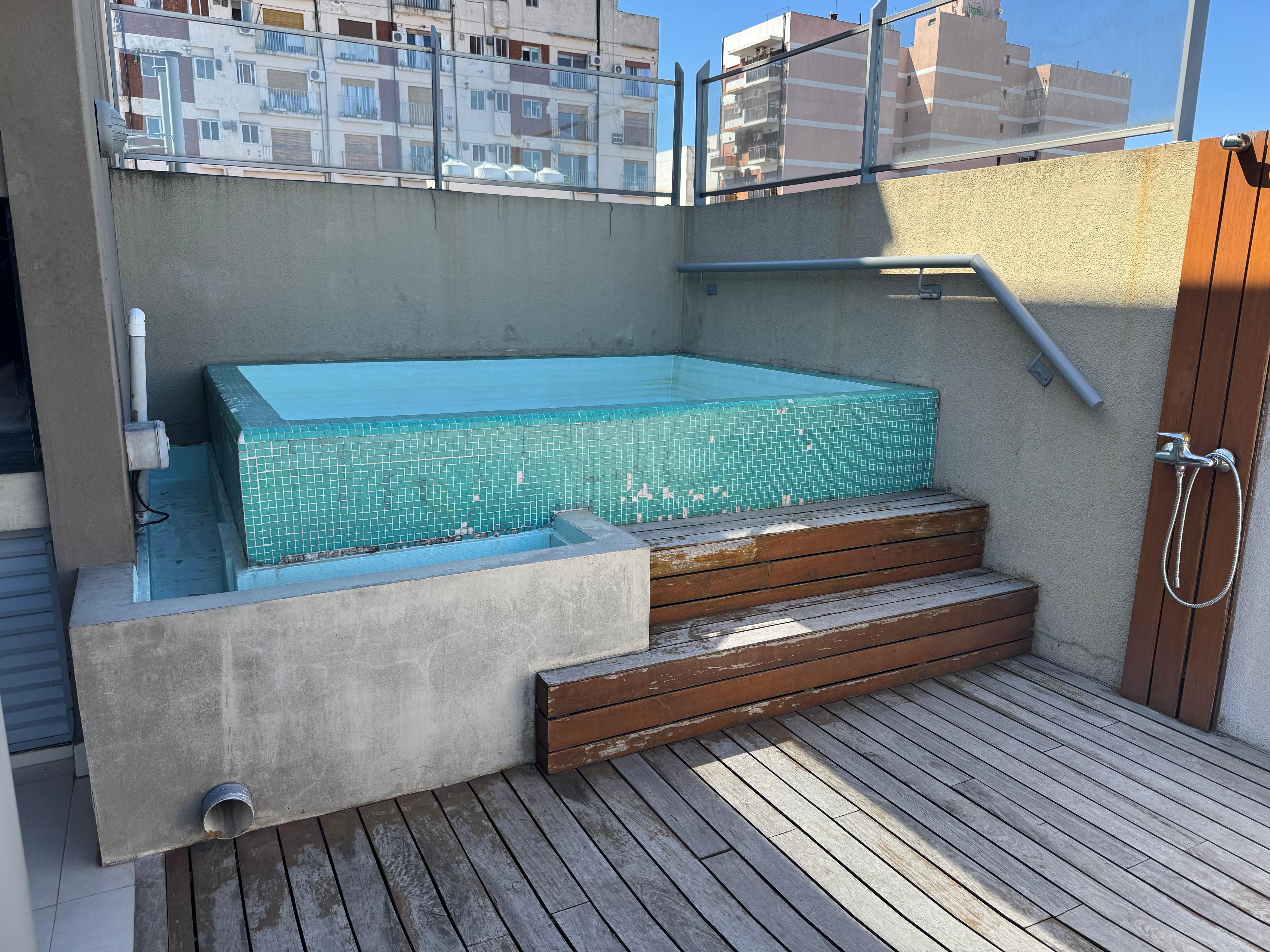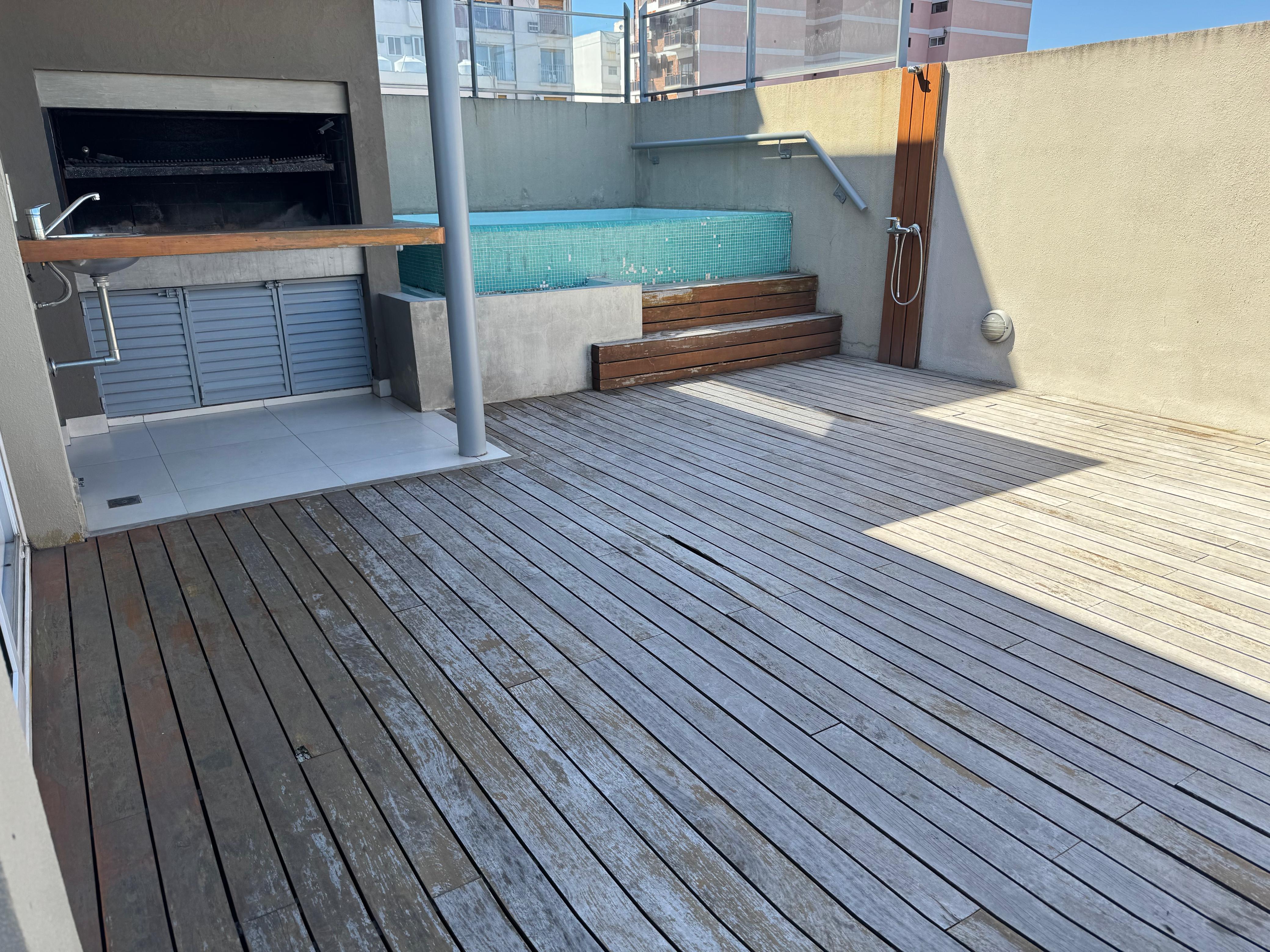 Excelente semipiso primer piso al frente. Posee un amplio living-comedor, con salida al balcón aterrazado, cocina completa con modulares completos y con lavadero, baño principal con bañadera, dos habitaciones con placed con sus interiores, la principal en suite. Posee calefaccion y refrigeración central independiente. cocheras en el sub suelo con baulera. Cabe destacar que se encuentra en excelente estado , ambientes grandes y luminosos, moderno y excelente zona. En el ultimo piso se encuentra la terraza para colgar ropa, además de zum para reuniones con baño y cocina. Posee jacuzzi para cuatro personas y solarium.