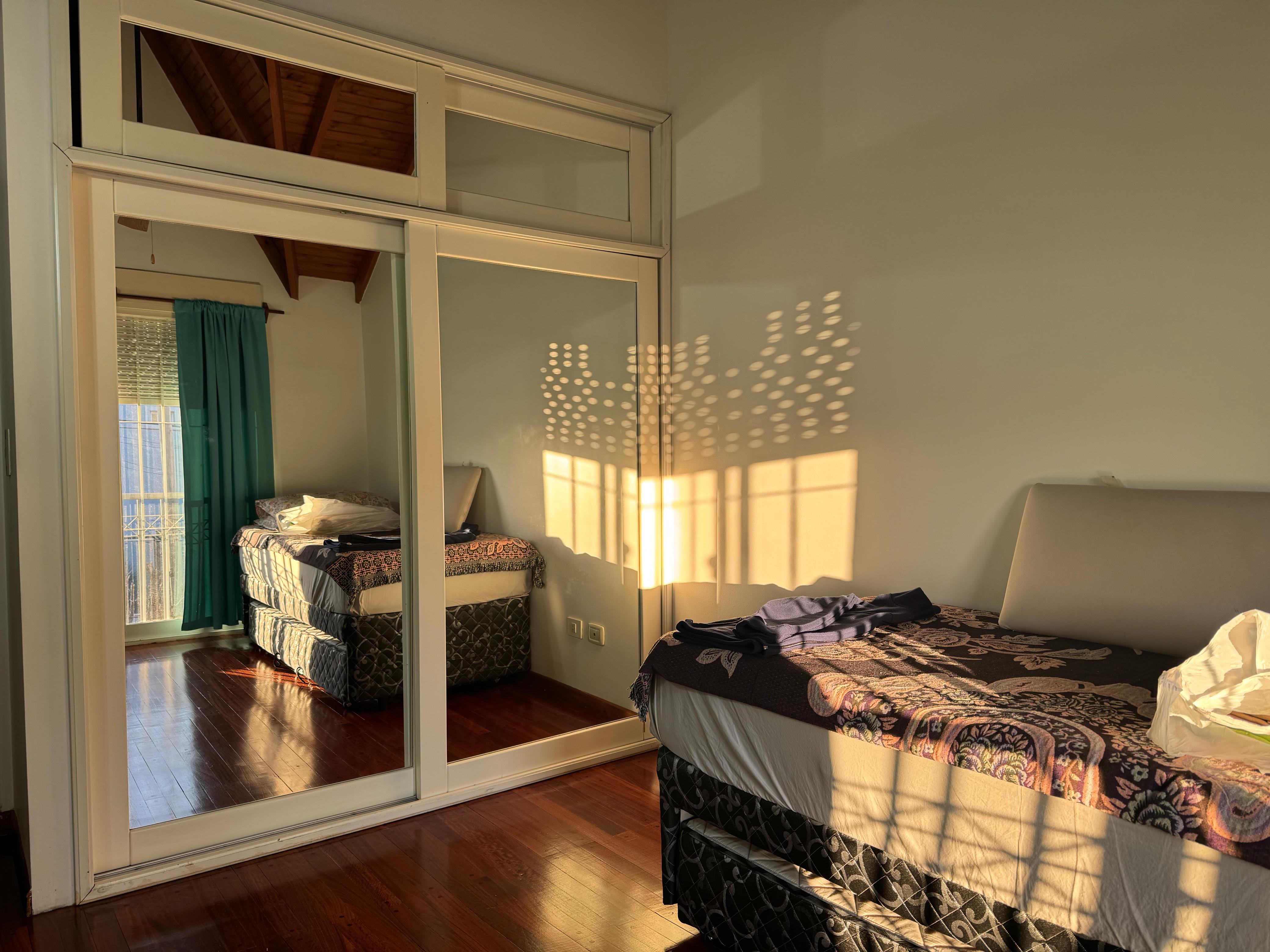 Imperdible Duplex, en zona residencial y céntrica de Ramos Mejia Sur, a 6 cuadras de Avenida de Mayo y a 5 cuadras de Avenida Rivadavia. En Planta baja: living- comedor con pisos de porcelanato, con ventanal grande muy luminoso integrado al cocina con modulares completos muy moderna, con anafe y horno empotrado, mesada de granito, bacha doble, grifería FV., toilette de recepción, cochera con portón automático y lavadero. En el primer piso: dos habitaciones cómodas, con placard, con pisos tarugados. Baño con bañadera. En el segundo piso: Playroon con lugares de guardado, ideal para otra habitación/office. Cabe aclarar que todos los ambientes poseen aire acondicionado frio/calor, posee tres estufas Escabe, al ingreso de la casa tenemos entrada de auto.